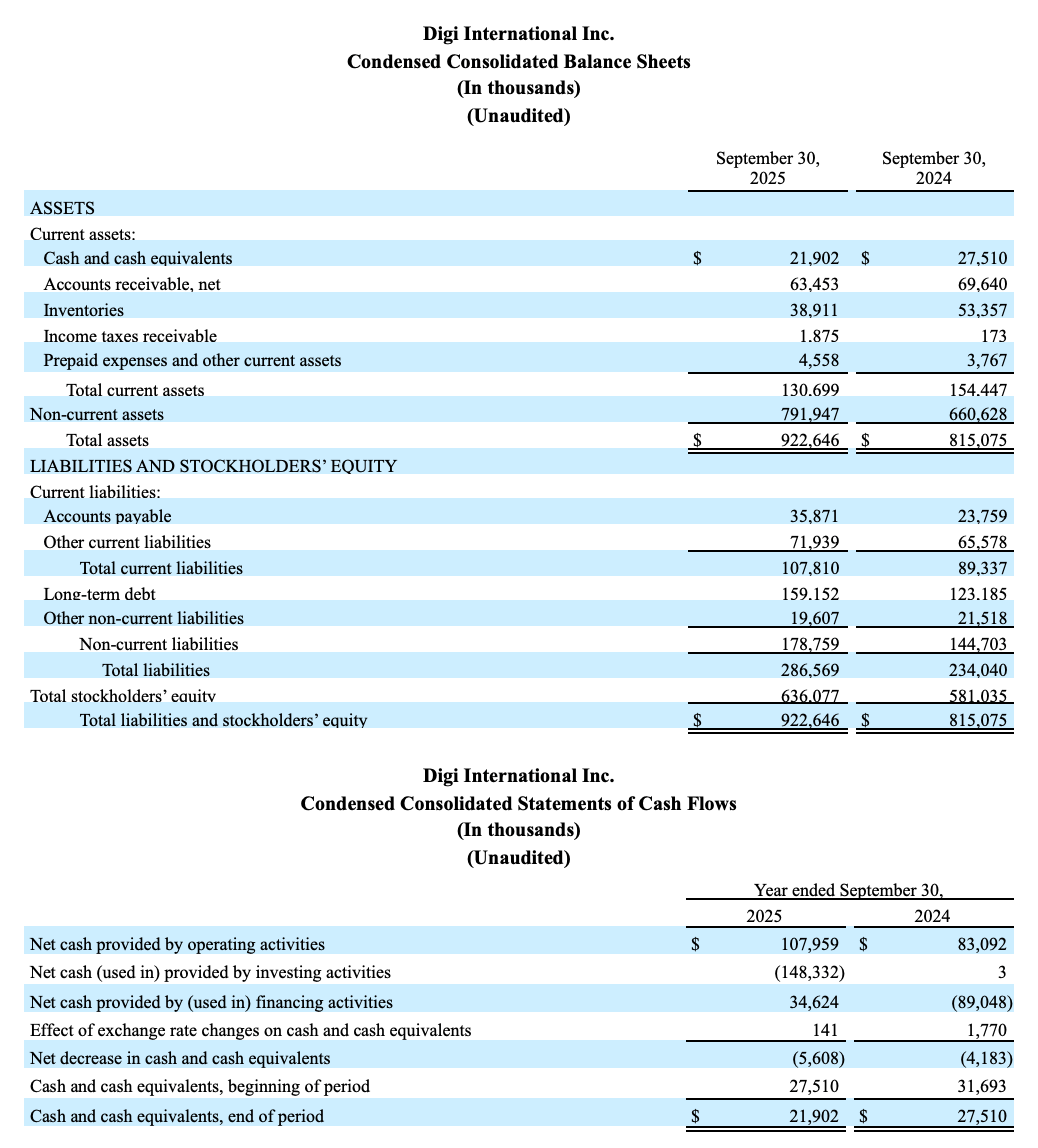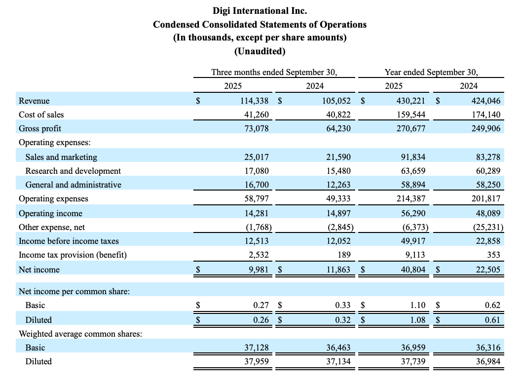 (Minneapolis, MN, 12. November 2025) - Digi International Inc. ("Digi" oder das "Unternehmen") (Nasdaq: DGII), ein weltweit führender Anbieter von geschäfts- und unternehmenskritischen Internet-of-Things (IoT")-Produkten, -Dienstleistungen und -Lösungen, gab heute seine Finanzergebnisse für das vierte Geschäftsquartal zum 30. September 2025 bekannt.